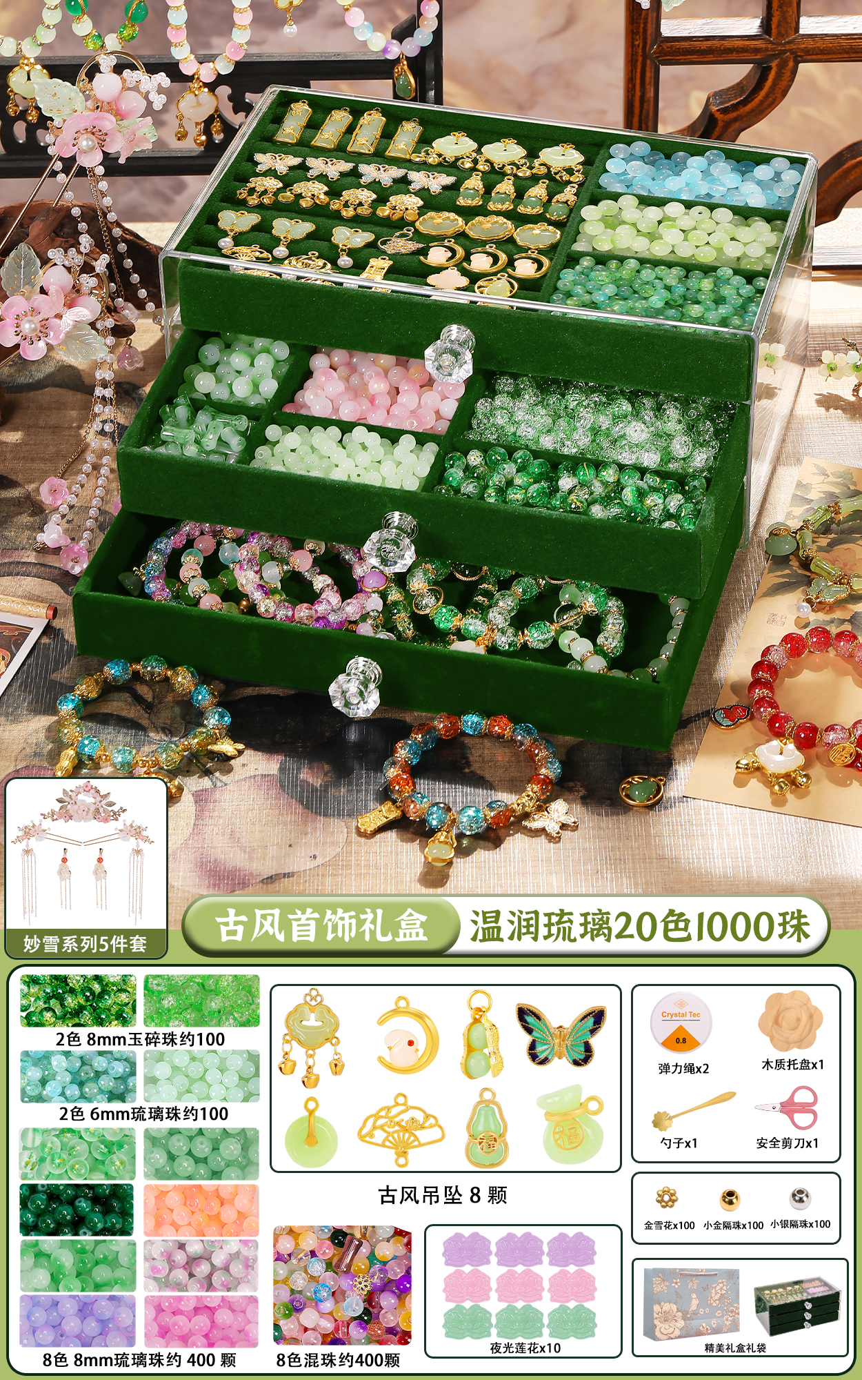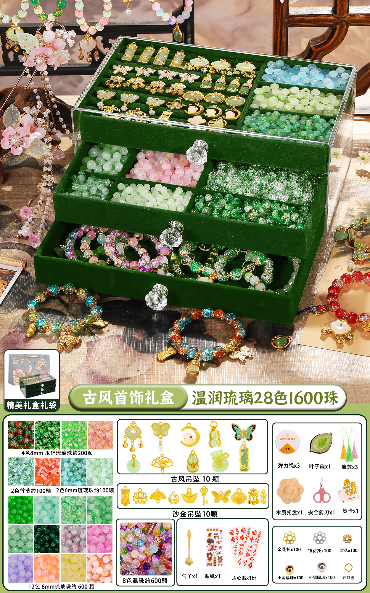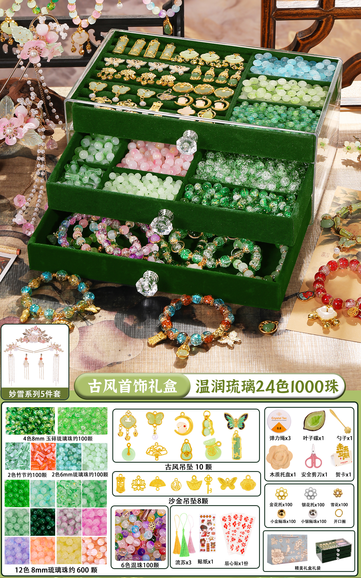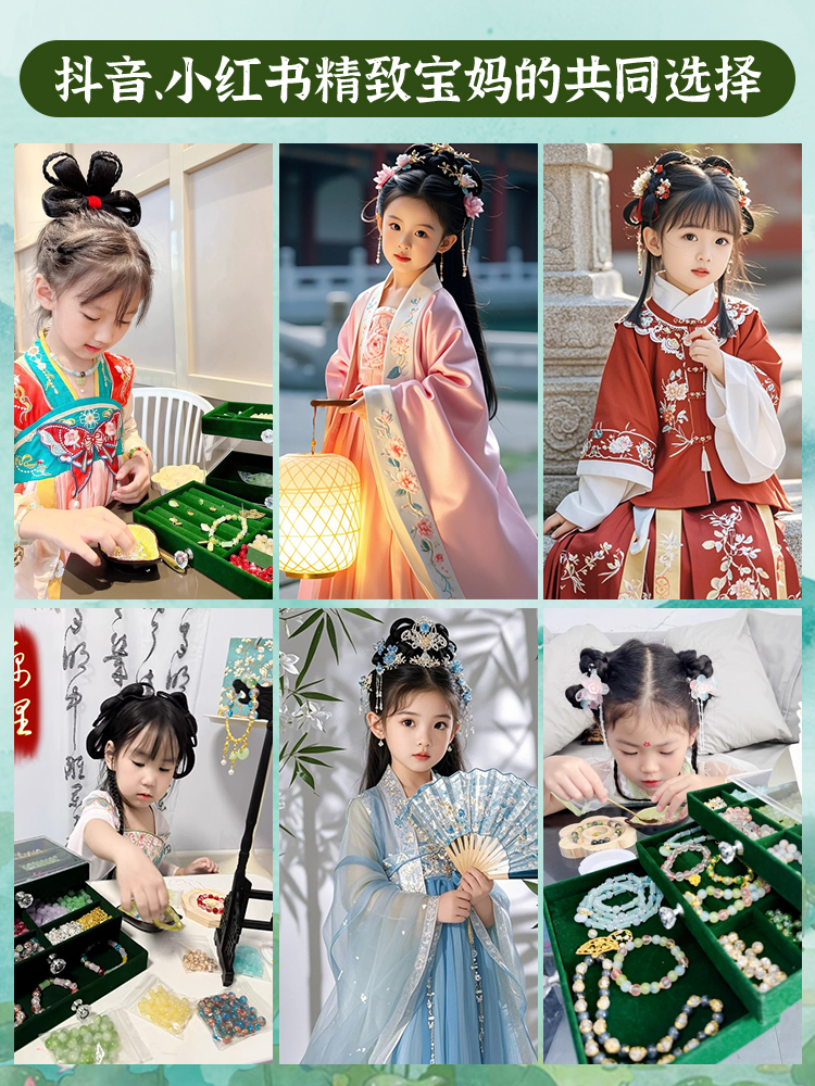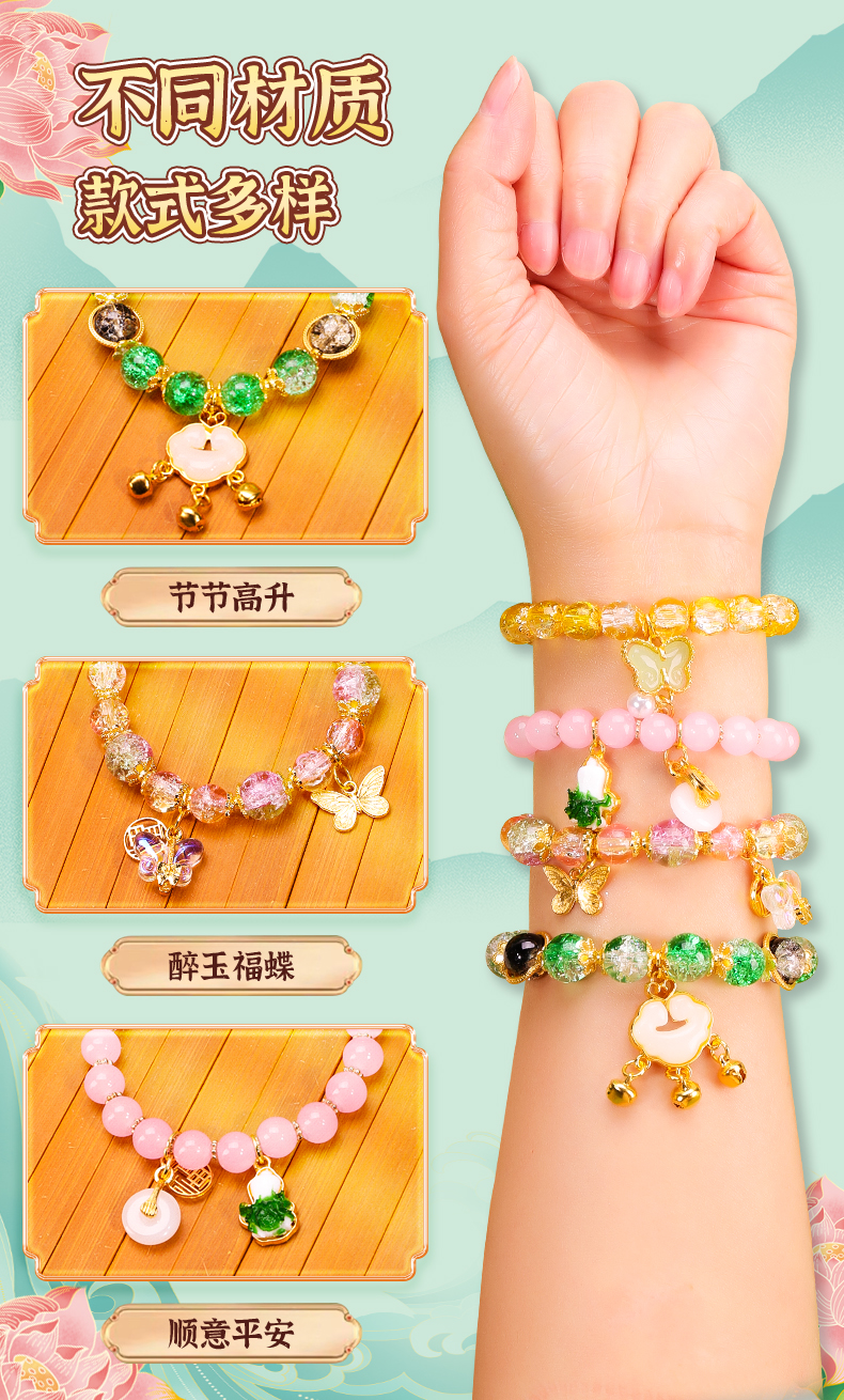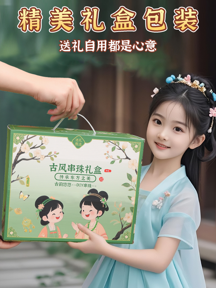 古风儿童手链串珠手串手工diy材料包小女孩子的生日礼物玩具礼盒