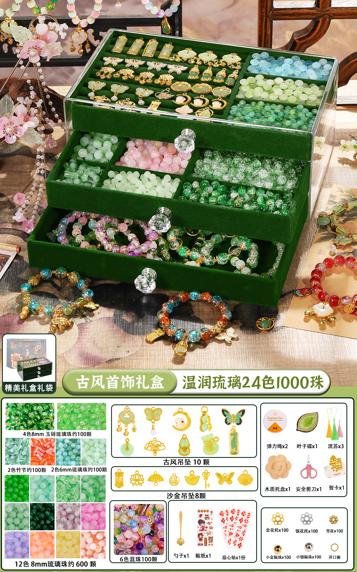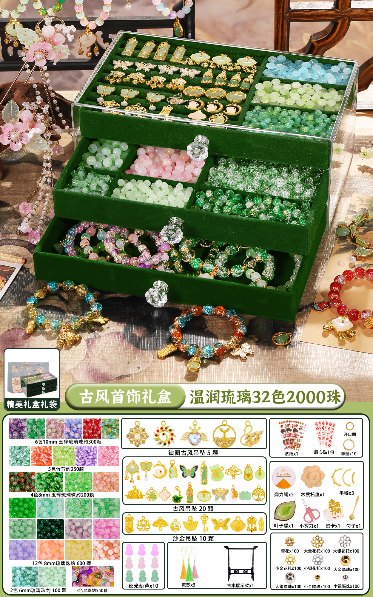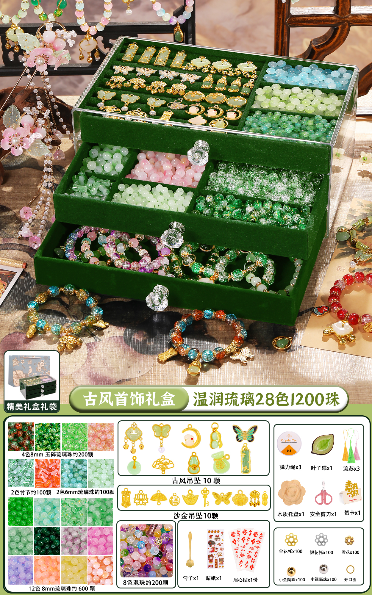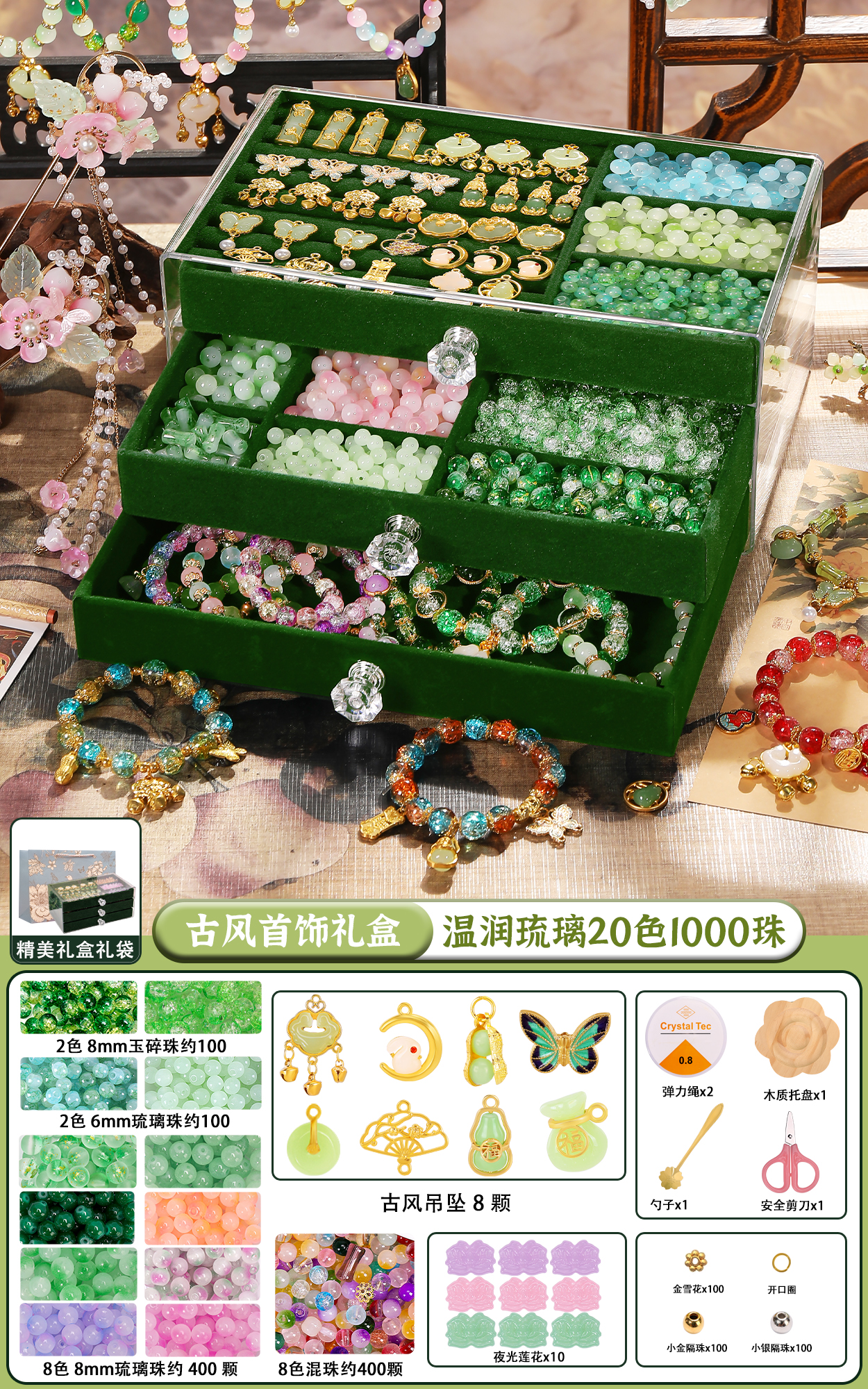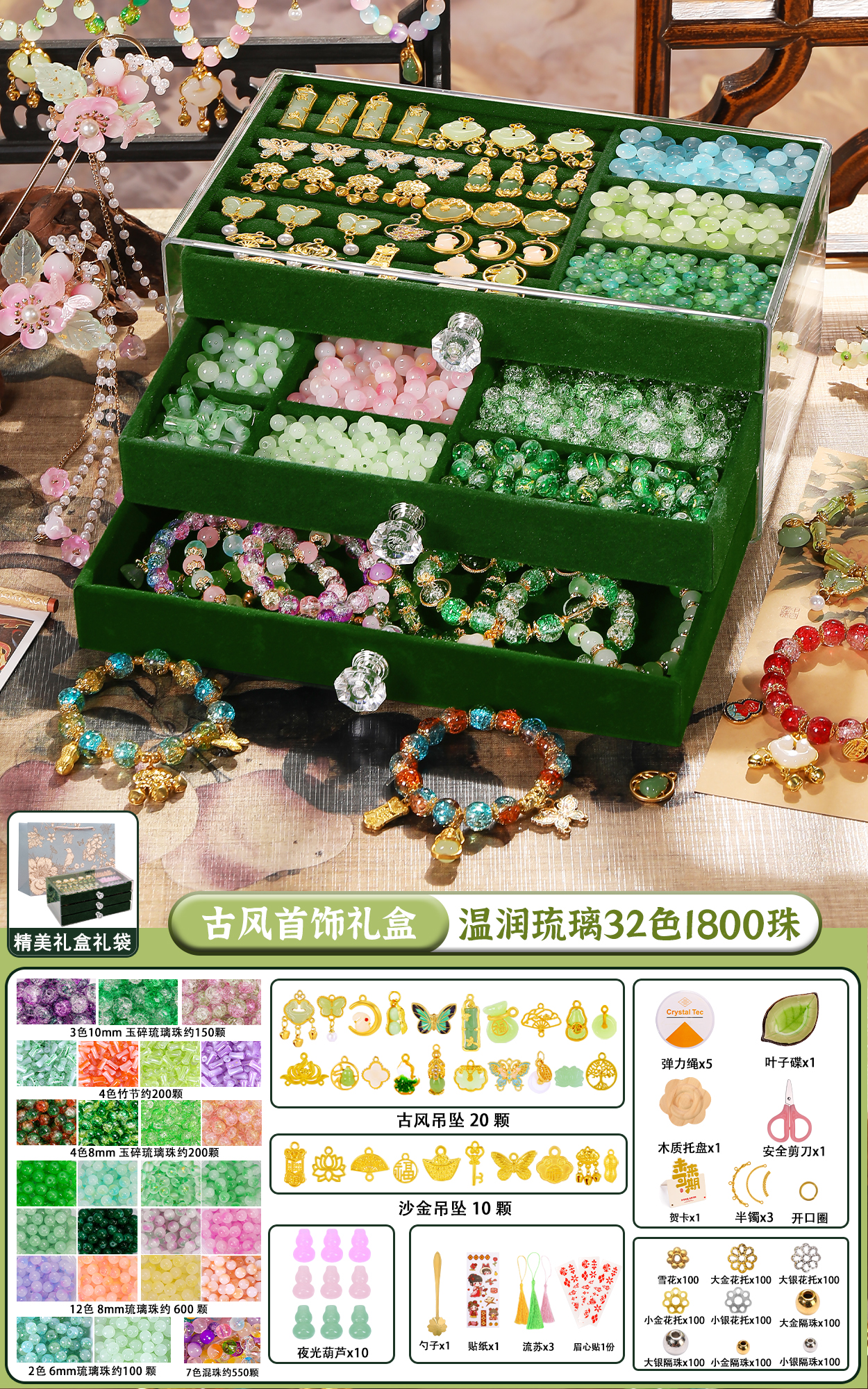 古风儿童手链串珠手串手工diy材料包小女孩子的生日礼物玩具礼盒