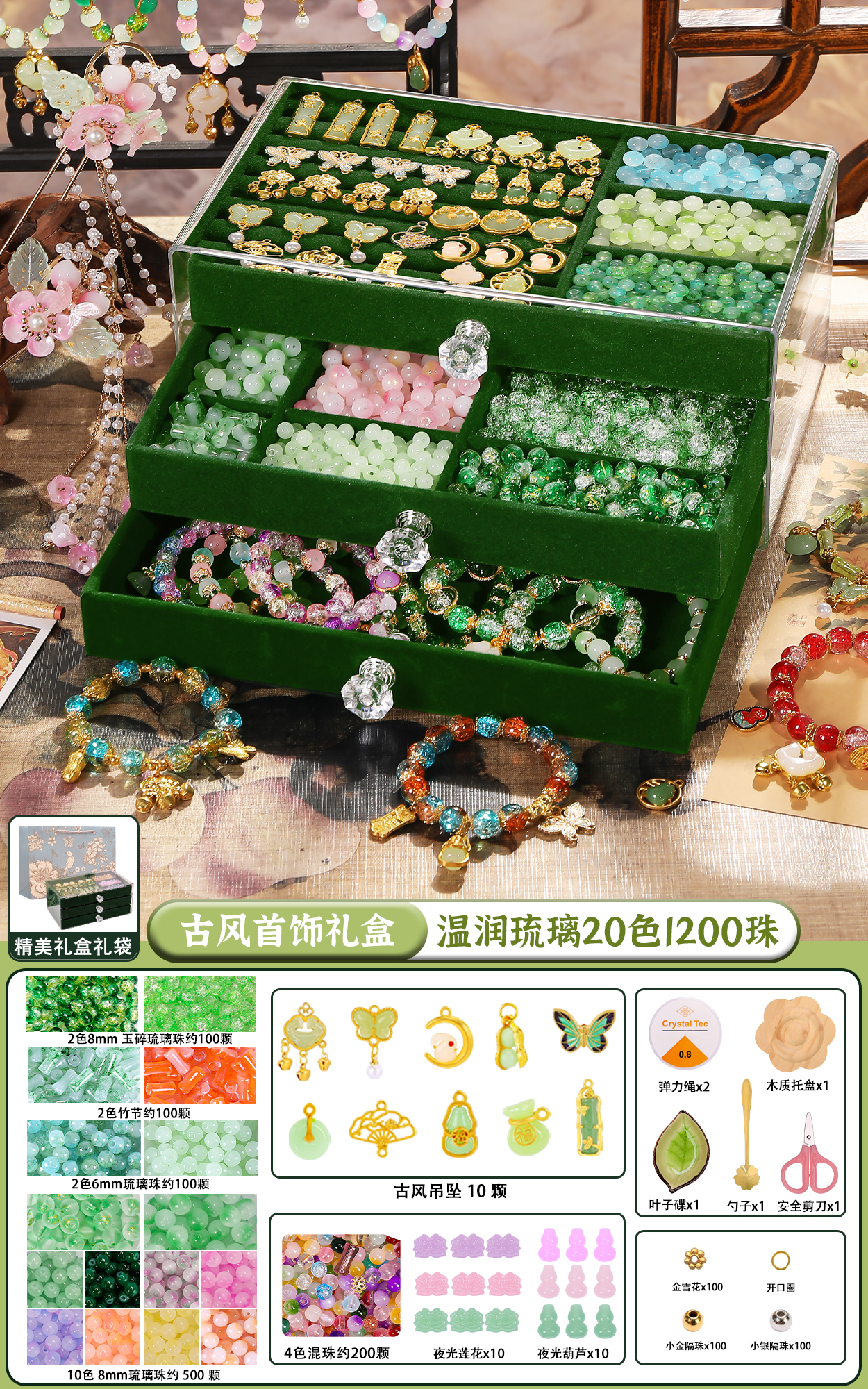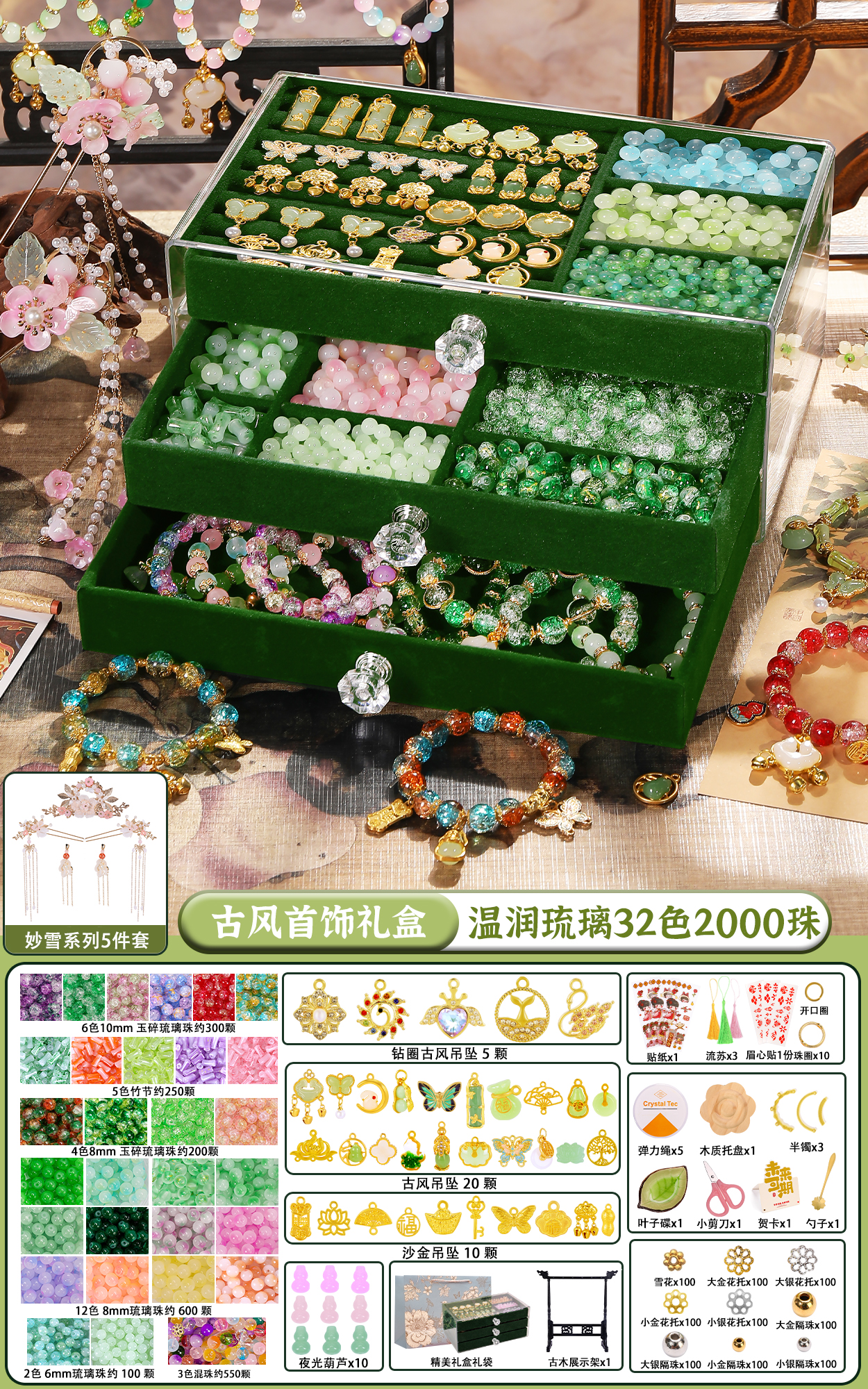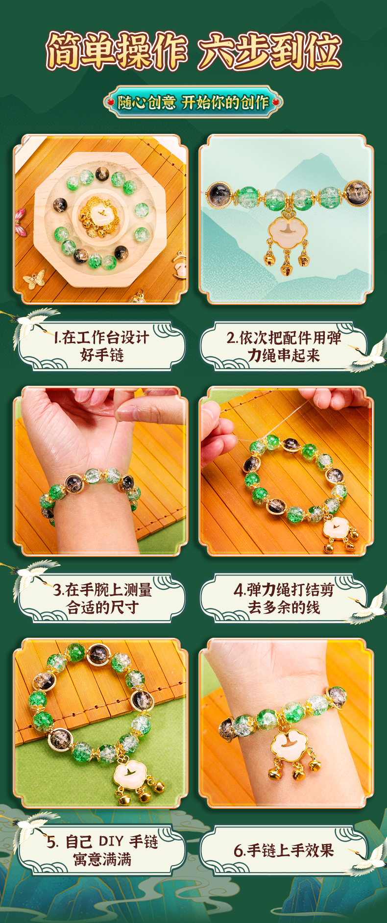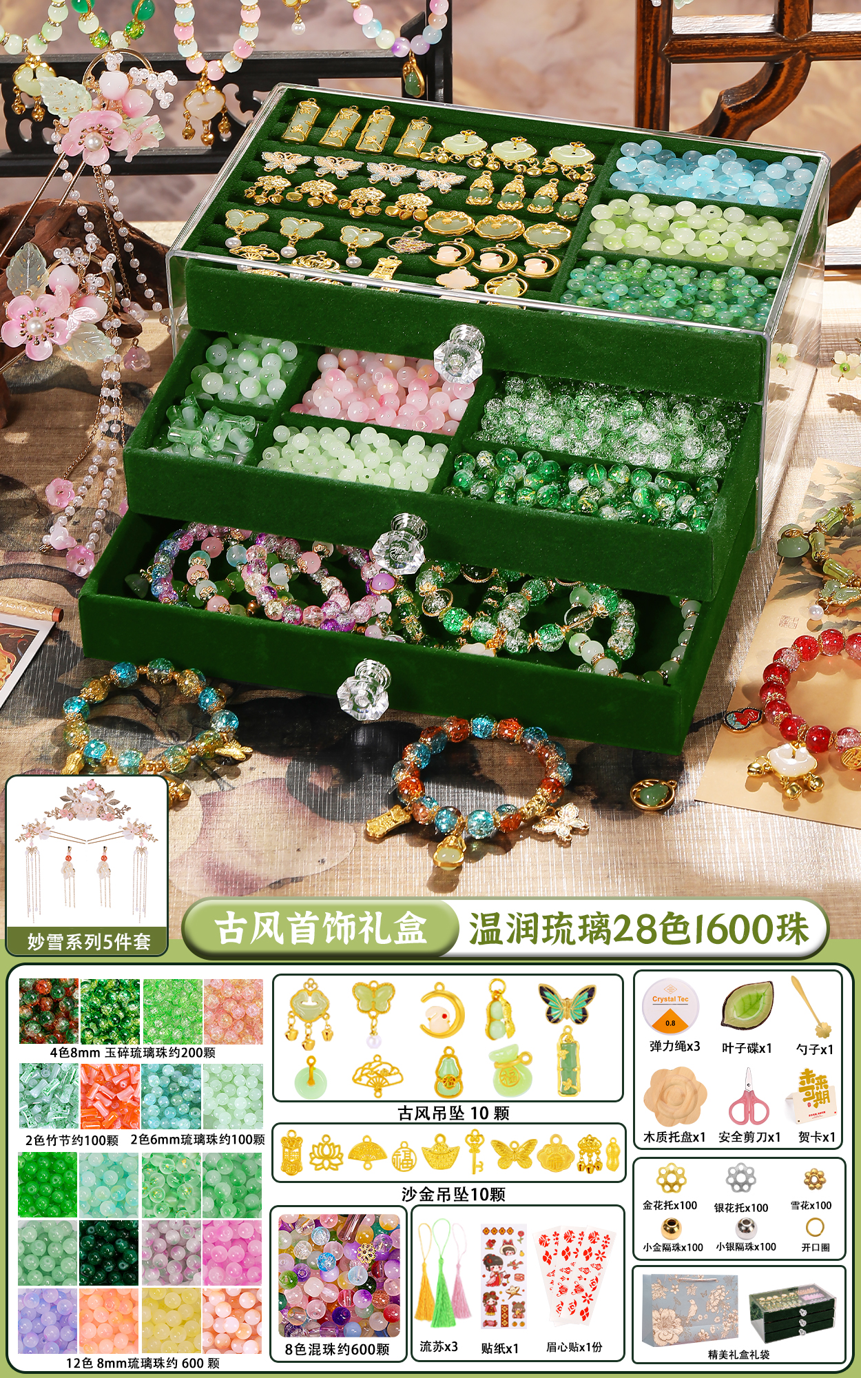 古风儿童手链串珠手串手工diy材料包小女孩子的生日礼物玩具礼盒