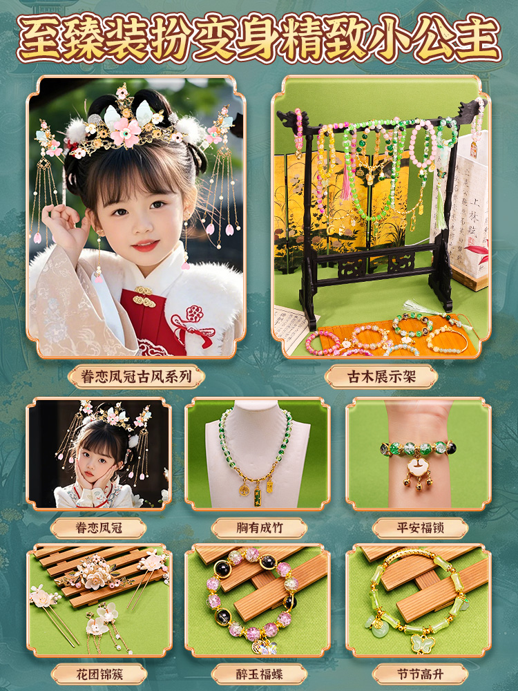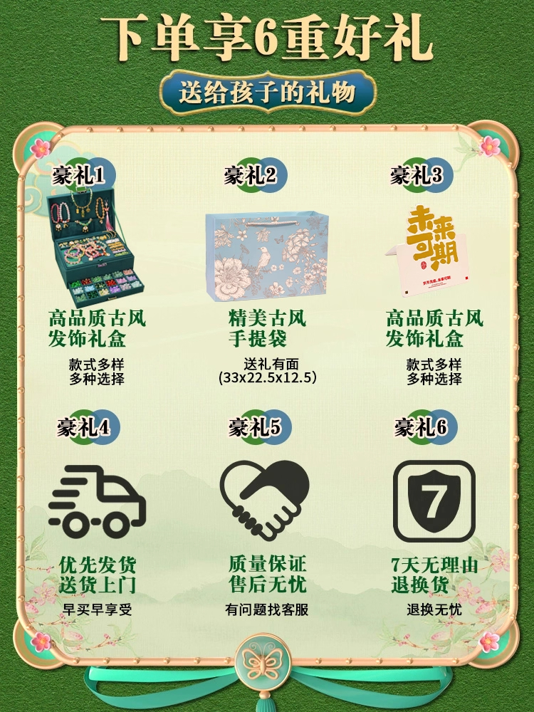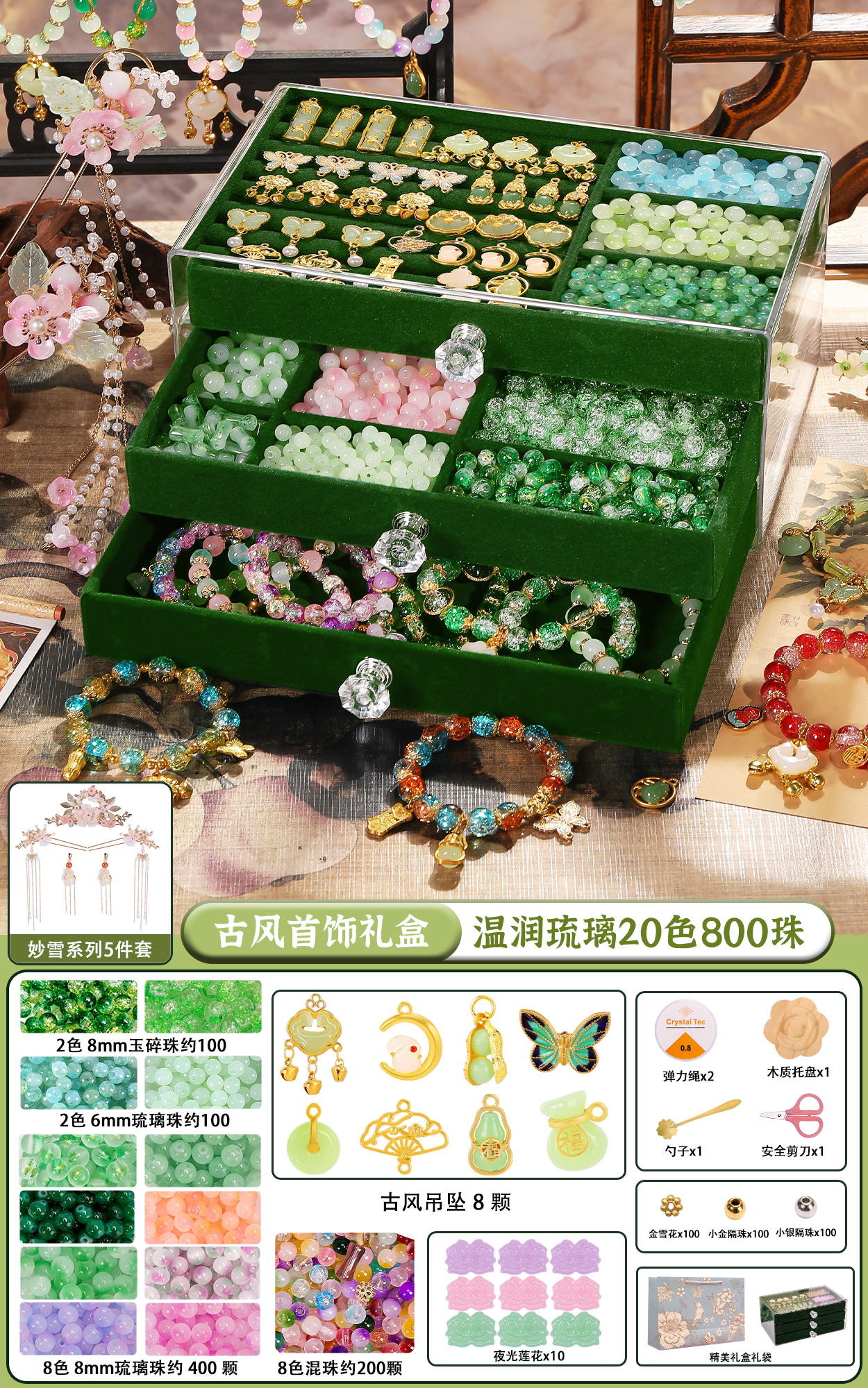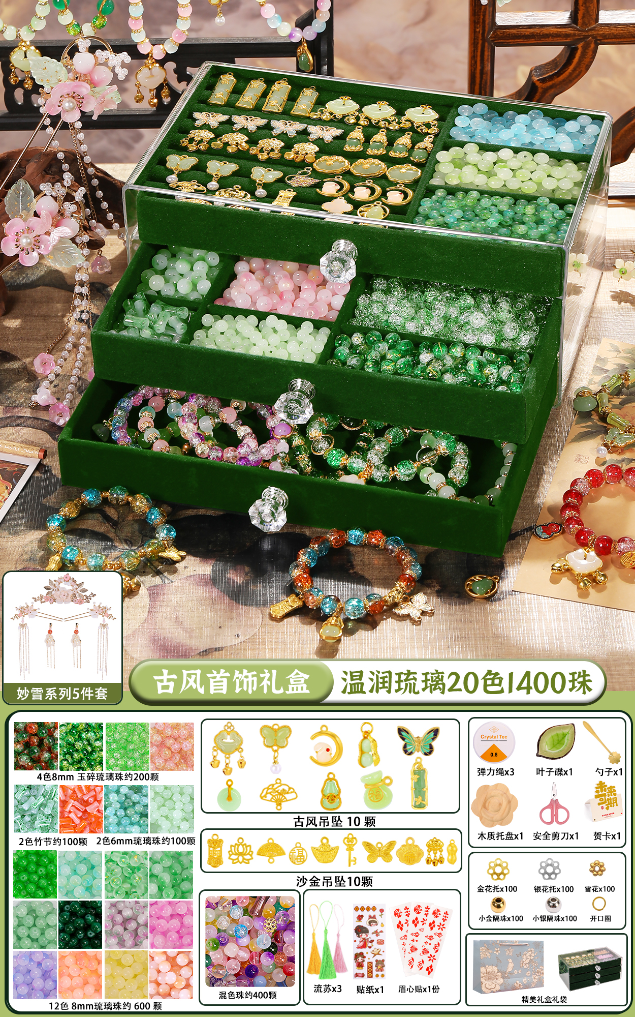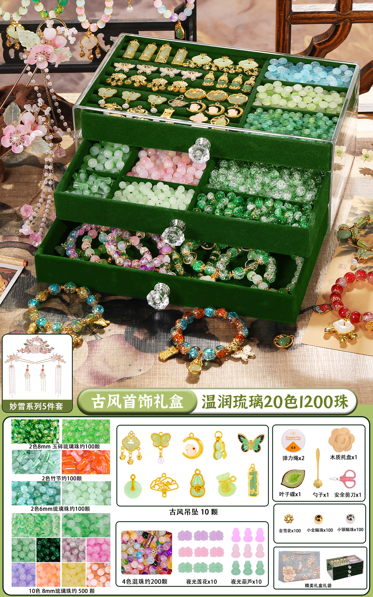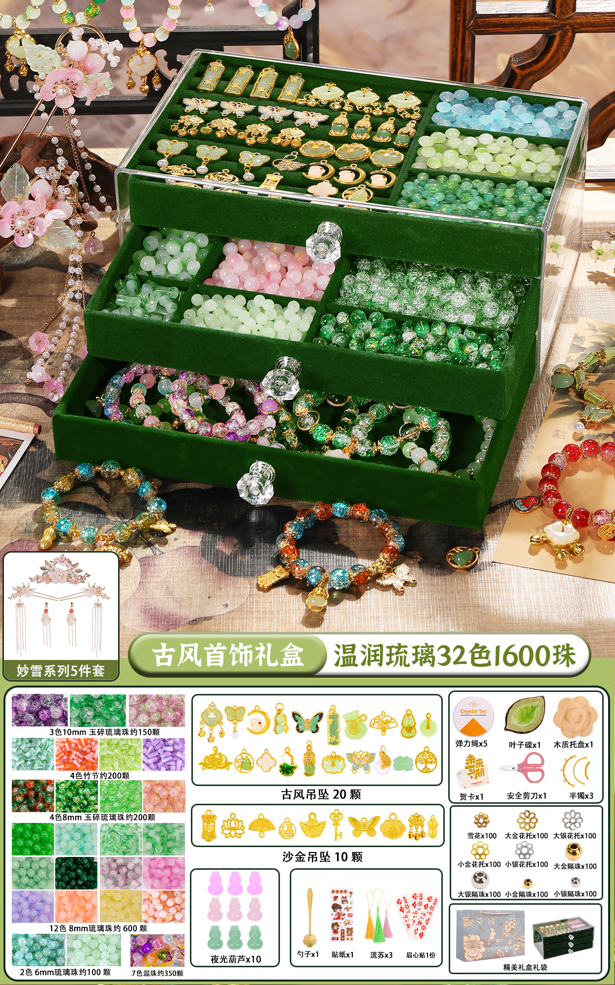 古风儿童手链串珠手串手工diy材料包小女孩子的生日礼物玩具礼盒