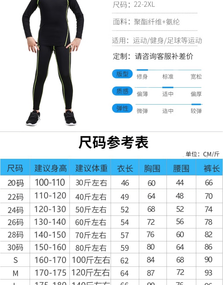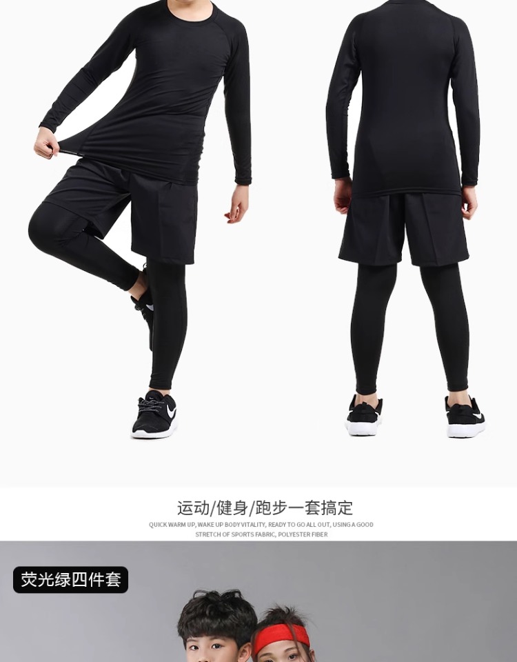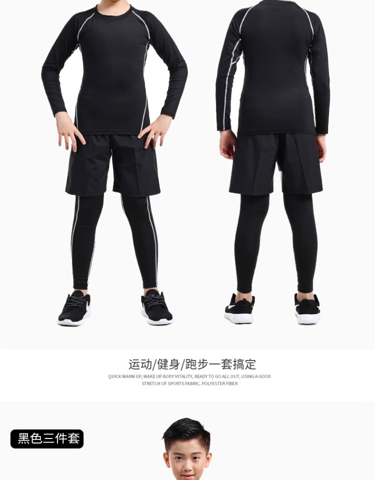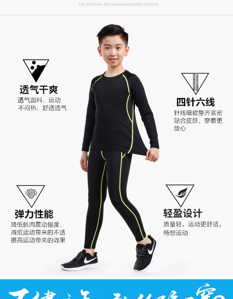 儿童紧身衣训练服速干衣男童秋冬篮球足球打底运动健身服套装男孩
