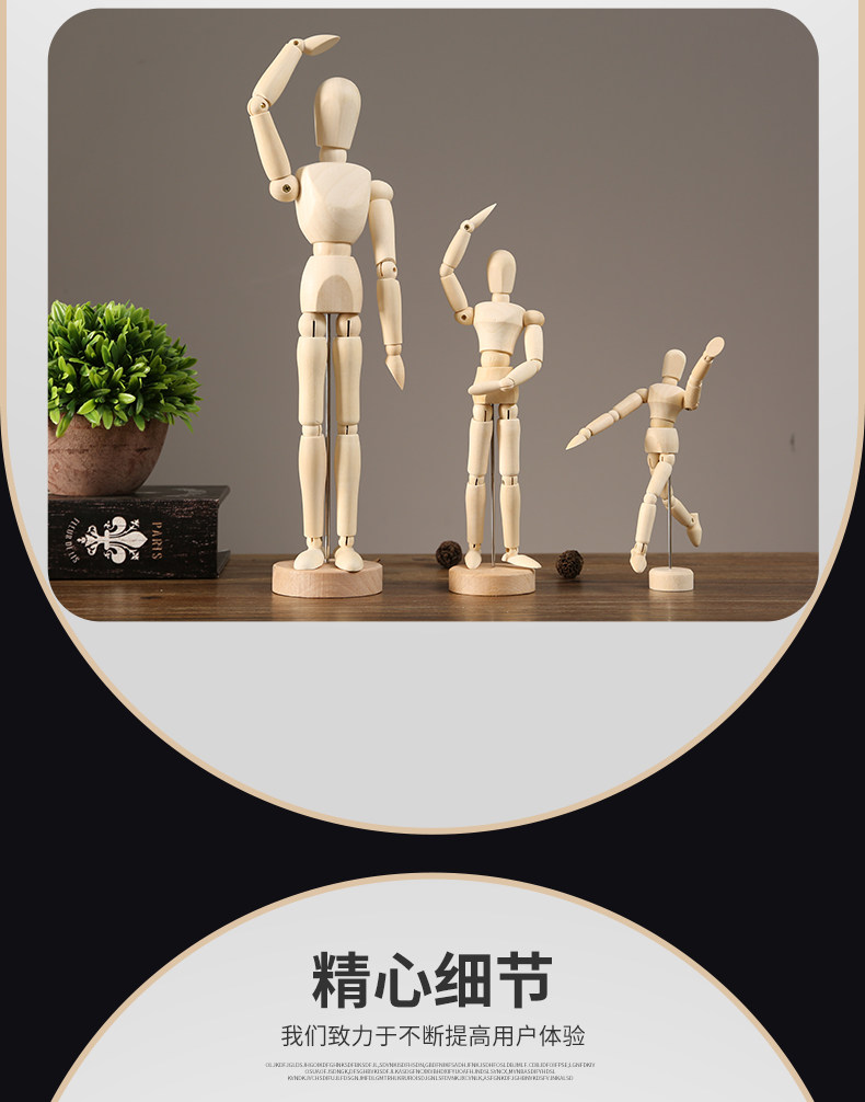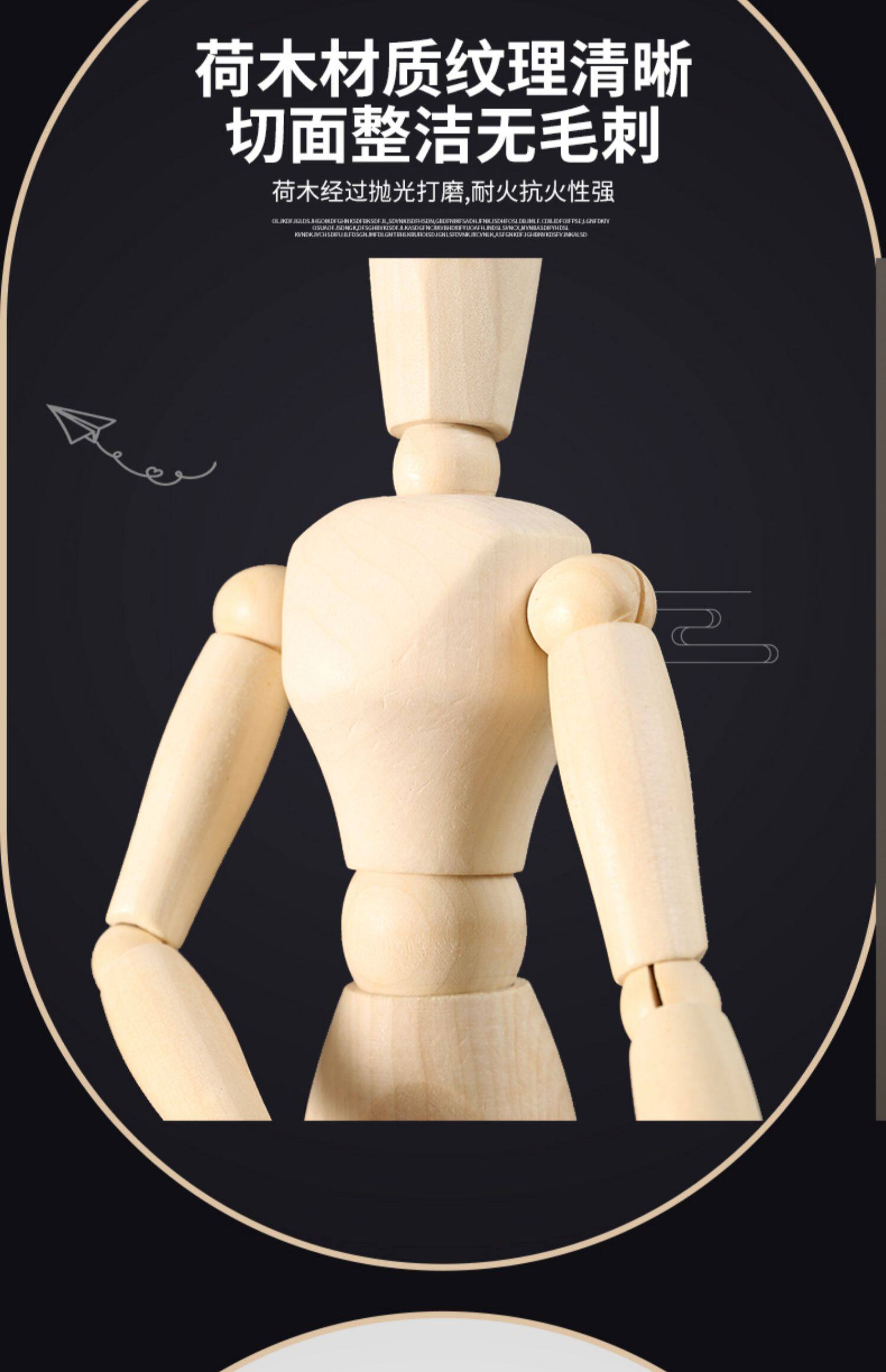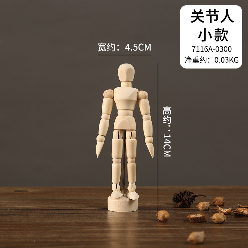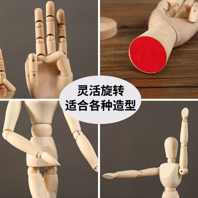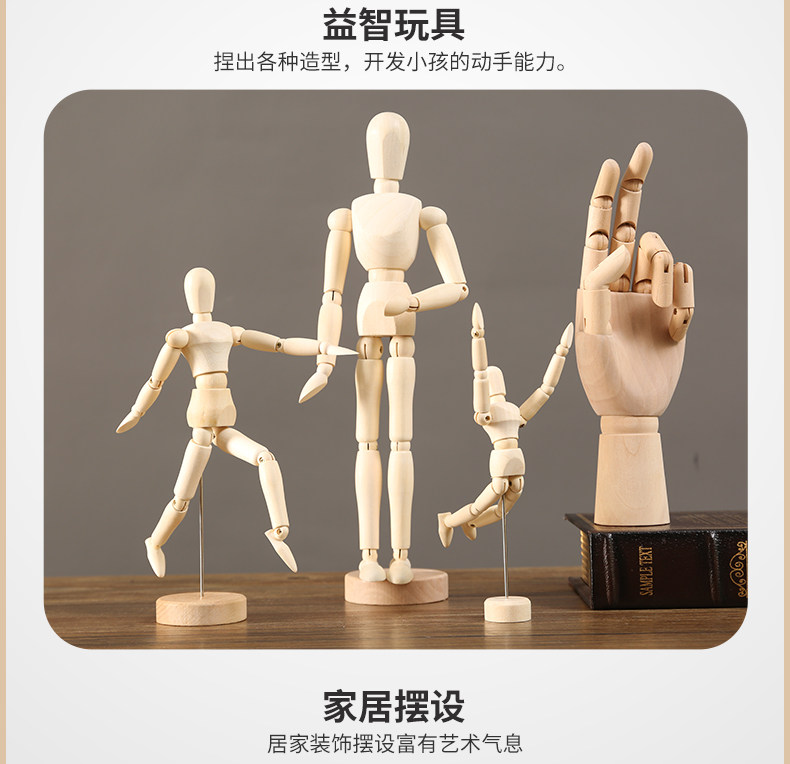 木质可活动关节人偶人体手指手模型木制公仔摆件素描小木头人玩偶