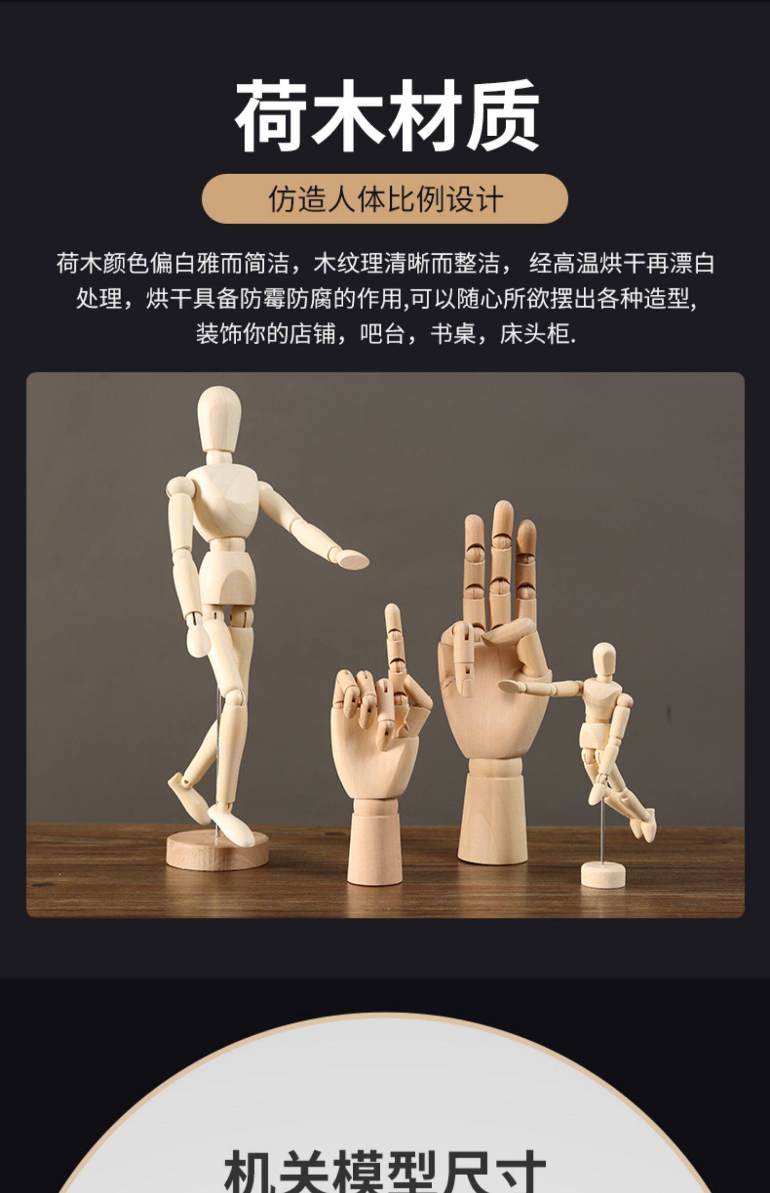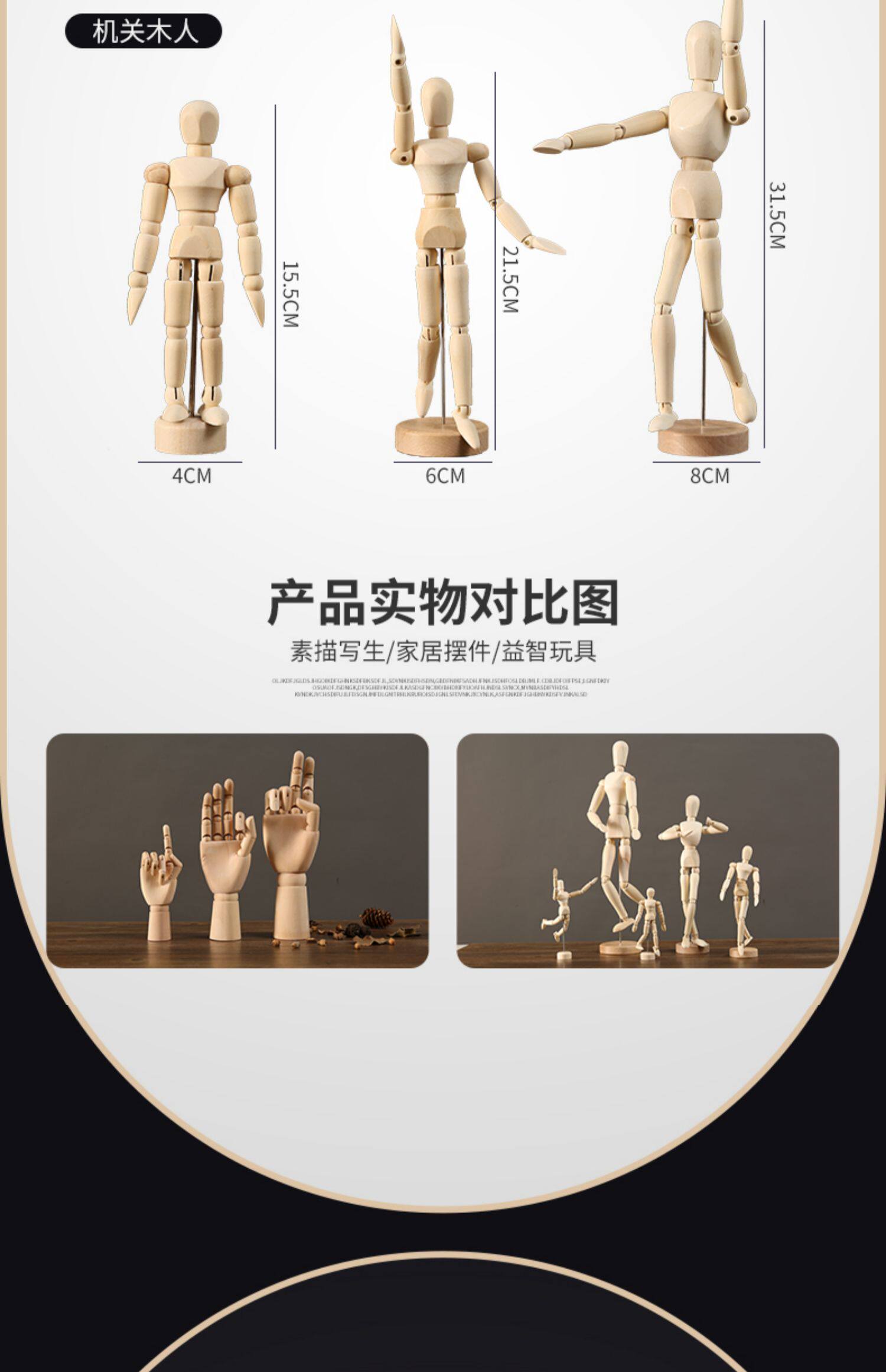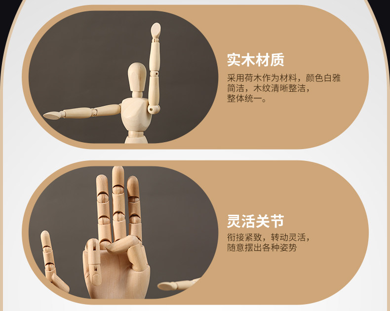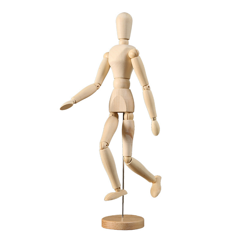 木质可活动关节人偶人体手指手模型木制公仔摆件素描小木头人玩偶