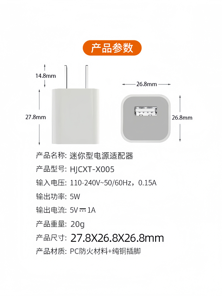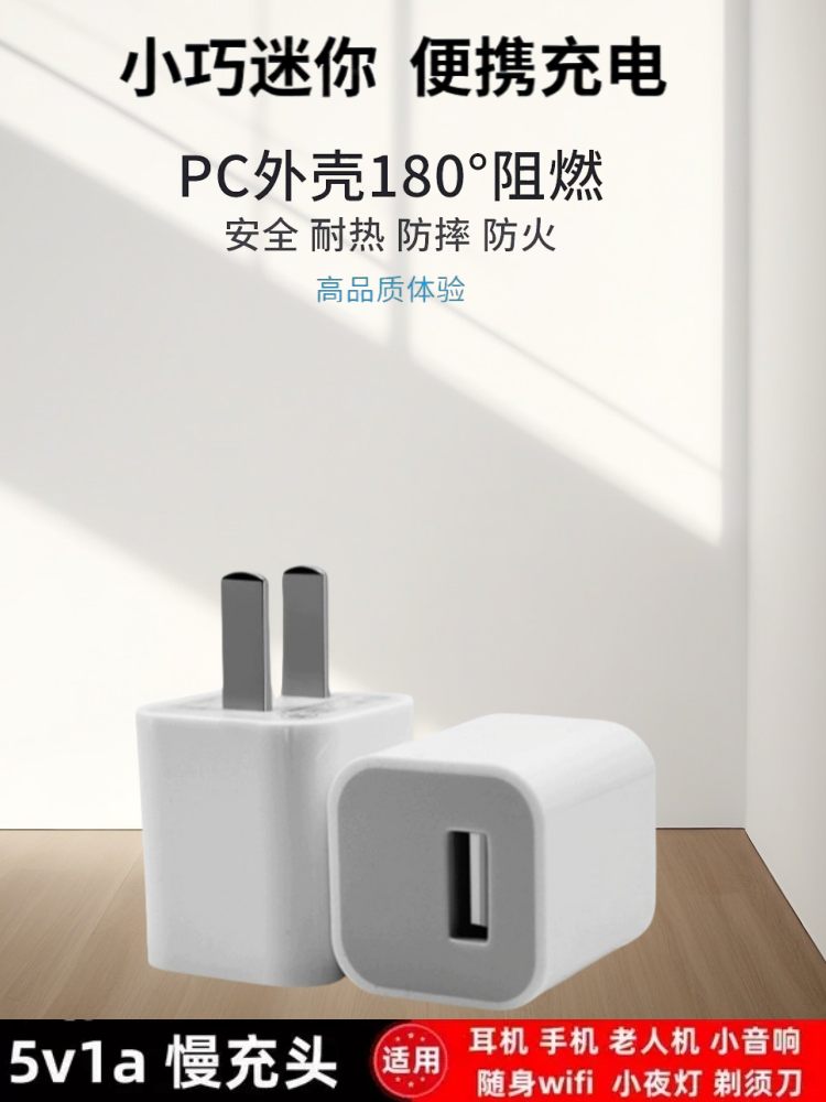 5v1a充电头小功率慢充电器手机usb插头万能通用苹果安卓手表蓝牙耳机小台灯摄像头随身wifi小电子产品5W套装
